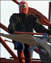 Once at the top, he donned a Spiderman outfit borrowing the idea from a couple of other fathers who climbed on the Royal Courts of Justice dressed as Batman and Robin.